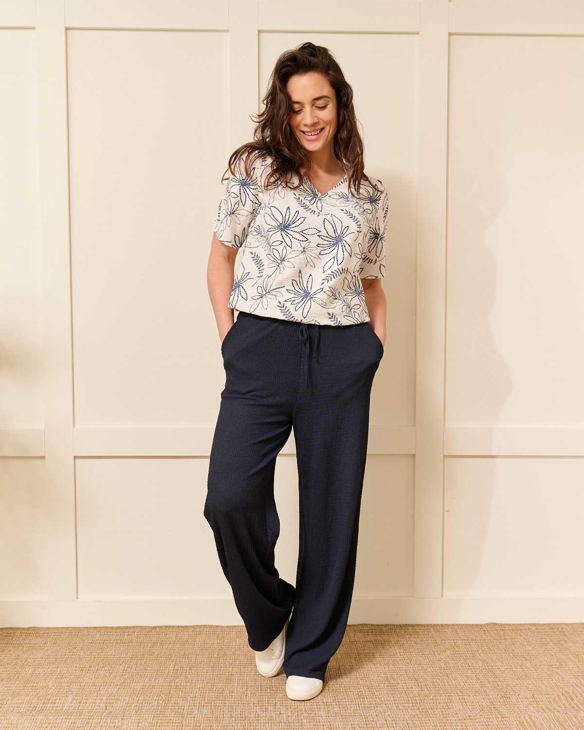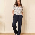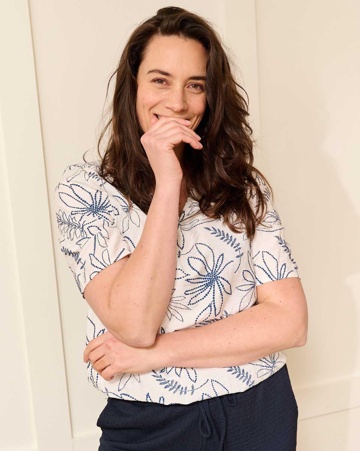 De Vivi blouson in Off-white met navy bloemen puff dessin heeft een klassieke en veelzijdige uitstraling. De losvallende pasvorm zorgt voor een comfortabele en vrouwelijke look die soepel om je heen valt. De Off-white kleur geeft een frisse en lichte uitstraling die perfect past bij zonnige dagen. Deze zachte tint laat het bloemen dessin subtiel spreken en zorgt voor een elegante look. De korte mouwen en elegante V-hals geven een flatterend effect. Verkrijgbaar in meerdere kleuren zoals Off-white, Geel, Reseda, Licht-blauw, Roze, Navy, Beige en Camel. De combinatie van Vivi, Off-white en bloemen dessin maakt deze uitvoering uniek binnen de collectie.